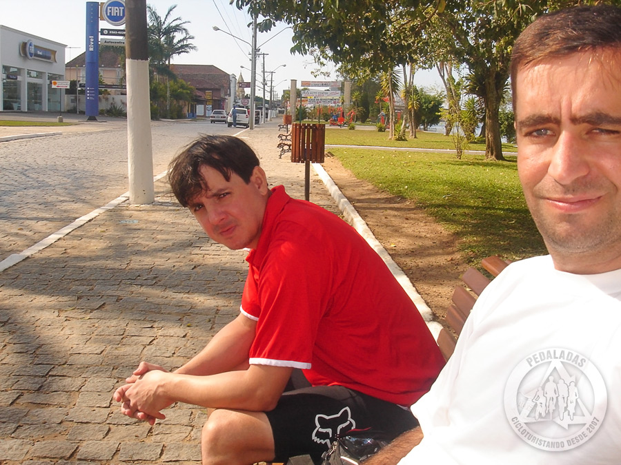 Pois bem, foi fácil? Não - não foi, claro que não... Teve momentos que nem divertido foi. Mas no geral foi muito bacana mesmo, uma experiência sem igual. Você que nunca fez uma pedalada mais longa como essa, deve ter pensado: – Nossa! Deve ter doído o forévis pra caramba... Vou te dizer o que doeu de verdade: os 180 pila de hotel que cada um de nós gastou, sendo que a grande maioria foi de qualidade bem duvidosa. Tirando isso e aquela infeliz lasanha de cebola da janta do segundo dia - foi tudo muito positivo. O Marcelo é uma criatura sem igual e aquelas manias esquisitas dele só tornam a convivência mais divertida. Lógico que não sou nenhum modelo de perfeição, e acredito que a nossa amizade se fundamenta justamente aí, pois cada um é louco ao seu jeito. Demos boas risadas juntos, podem ter certeza. E, naquele morro infindável, proferimos juntos, da forma mais malcriada possível, o mais absurdo dos palavrões! Por que Aquele papo goiaba do Yoda, que o lado negro é ruim é pura cascata. Um pouquinho de raiva sempre ajuda, principalmente morro acima!... Se a raiva leva para o lado negro da força e ali possui o caminho mais fácil - sim! Tenha certeza que é por ali que nós vamos pedalar... O árduo caminho até Vidal Ramos nos ensinou isso. Santa Catarina é um estado fantástico e a iniciativa de conhecer o máximo de cidadezinhas catarinenses nos entusiasmou muito - sendo que a ideia é repetir a dose no ano que vem, explorando algum outro roteiro. Deveras lisonjeados de viver aqui!
