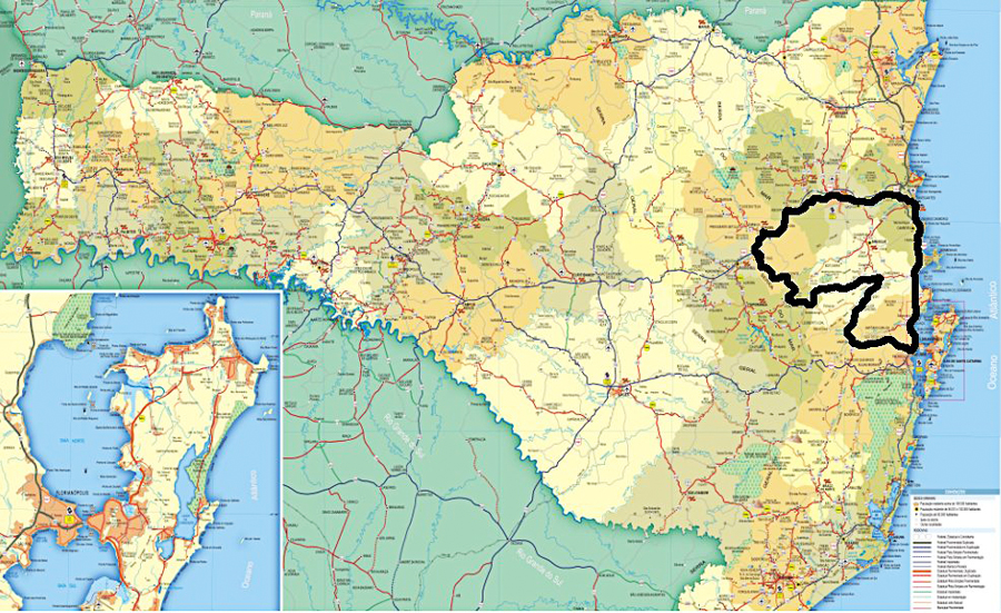 Florianópolis – São José – São Pedro de Alcântara – Angelina – Garcia – Major Gercino – Tigipió – São João Batista – Nova Trento – Aguti – Boiteuxburgo – Vidal Ramos – Germano Schaefer – Presidente Nereu – Lontras – Ibirama – Apiúna – Ascurra – Indaial – Blumenau – Gaspar – Ilhota – Itajaí – Balneário Camboriú – Itapema – Tijucas – Biguaçu – São José – Florianópolis.