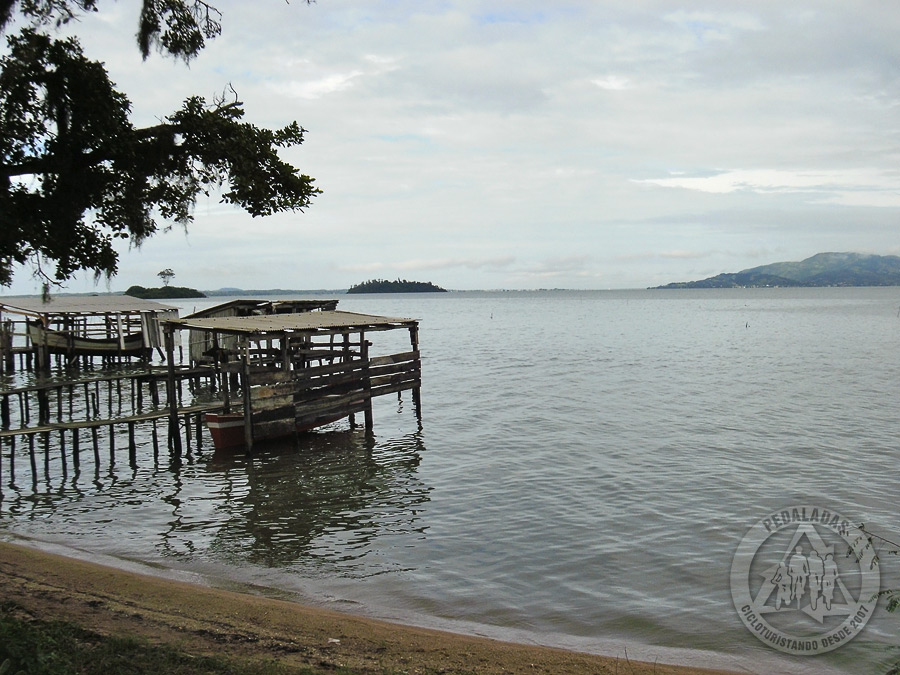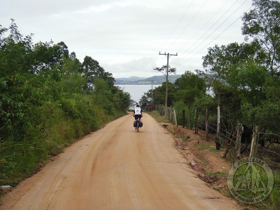 O vazio entre as bikes nos fez lembrar do agora não mais moribundo Marcelo, que certamente naquele momento ainda estava dormindo. Por alguns segundos sentimos raiva dele e voltamos a ficar tristes, relembrando a amada cama que ficou para trás. Iniciamos o dia ladeando a Lagoa de Imaruí e agora se afastando de vez do litoral. Alguma coisa estava estranha e levamos algum tempo para perceber.