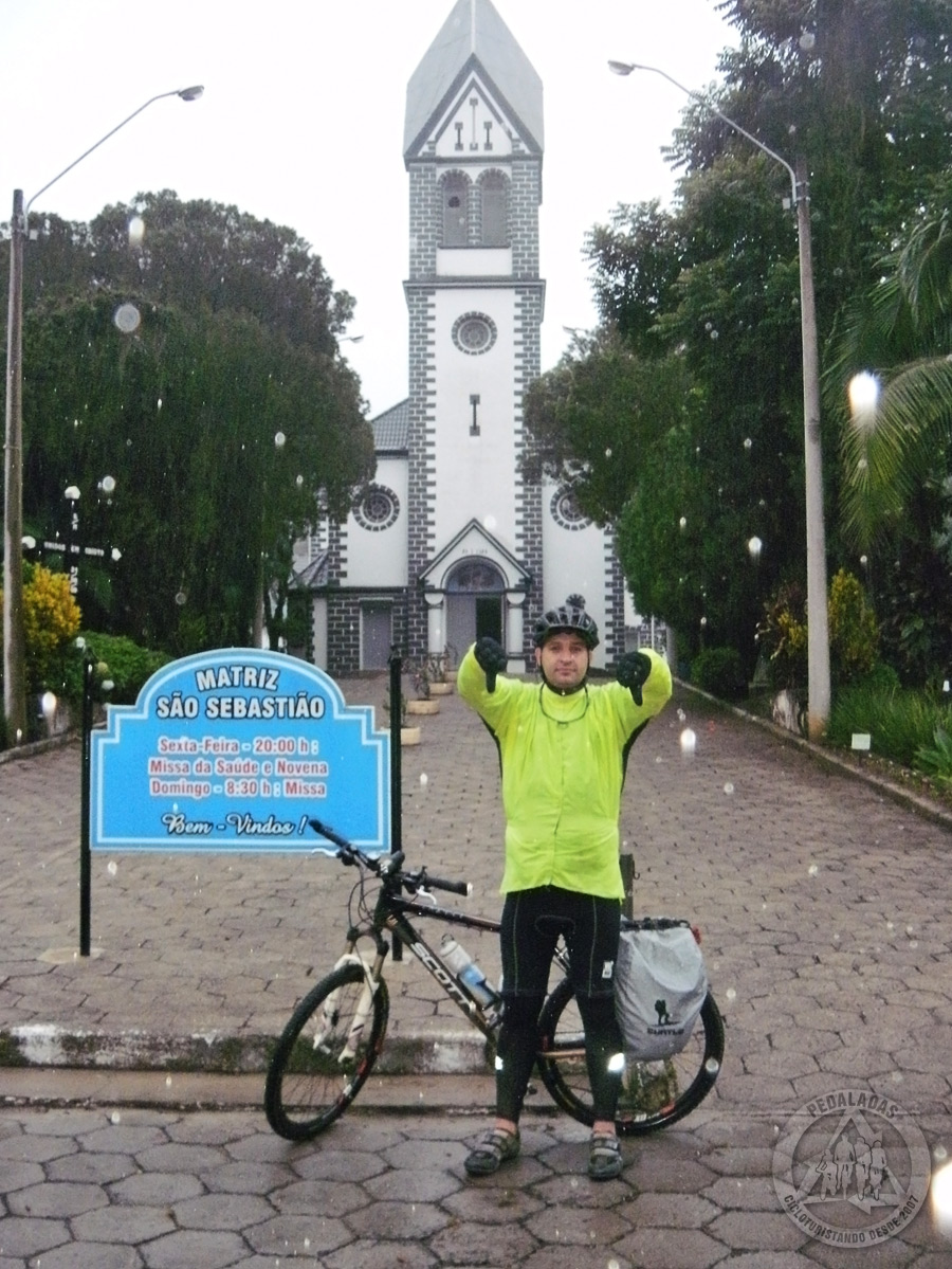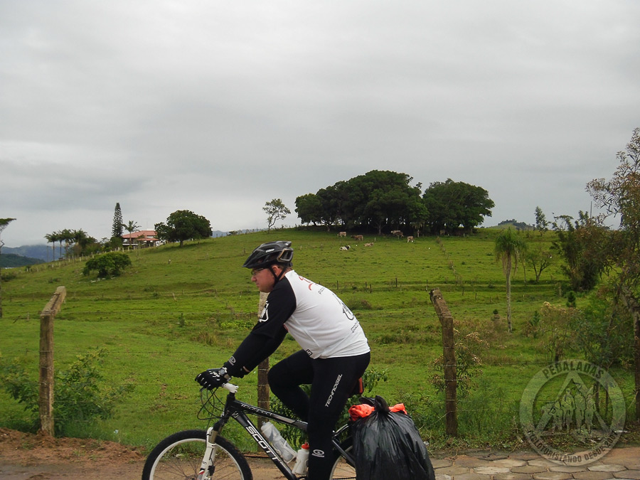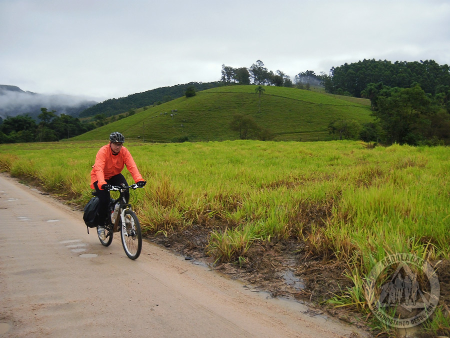 Por várias horas pedalamos no meio do nada. A temperatura caía na mesma proporção que a fome aumentava e continuávamos subindo. Foi um momento que gerou bastante preocupação, pois eu já não tinha mais certeza se o nosso condicionamento físico era suficiente para completar a demanda. Olhei para o Roberto e ele ainda estava respirando e isso era um bom sinal. Perto das 15h, as infaustas criaturas aqui, chegaram a São Luiz, um pequeno vilarejo Hobbit de Imaruí.