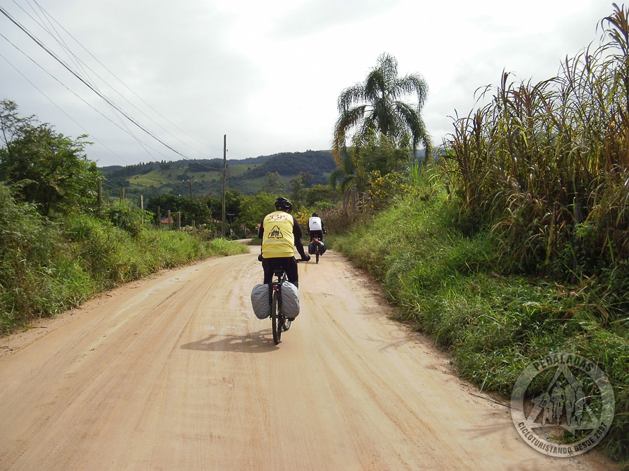 Nossa segunda baixa: a tão judiada bike do Roberto não resistiu e quebrou! A desolação foi total. Apesar de estar pedalando constantemente no limite, Roberto estava acompanhando bem. E o melhor, ele cansado não fala tanto – o que nos alegra de verdade. Novamente ficamos sem saber o que fazer. Péssimos mecânicos que somos, nos resignamos e fomos procurar alguém para levar o inconformado Roberto embora. Realmente ficamos tristes pelo amigo. Não foi um momento bacana, mas procuramos não pensar muito nisso, pois tínhamos um bom trecho ainda para percorrer. Roberto seguiu viagem de Pickup Ford Courier (com um nativo que lhe extorquiu a alma pela carona) até São Bonifácio e os dois trouxas remanescentes, continuaram sua jornada - novamente morro acima.