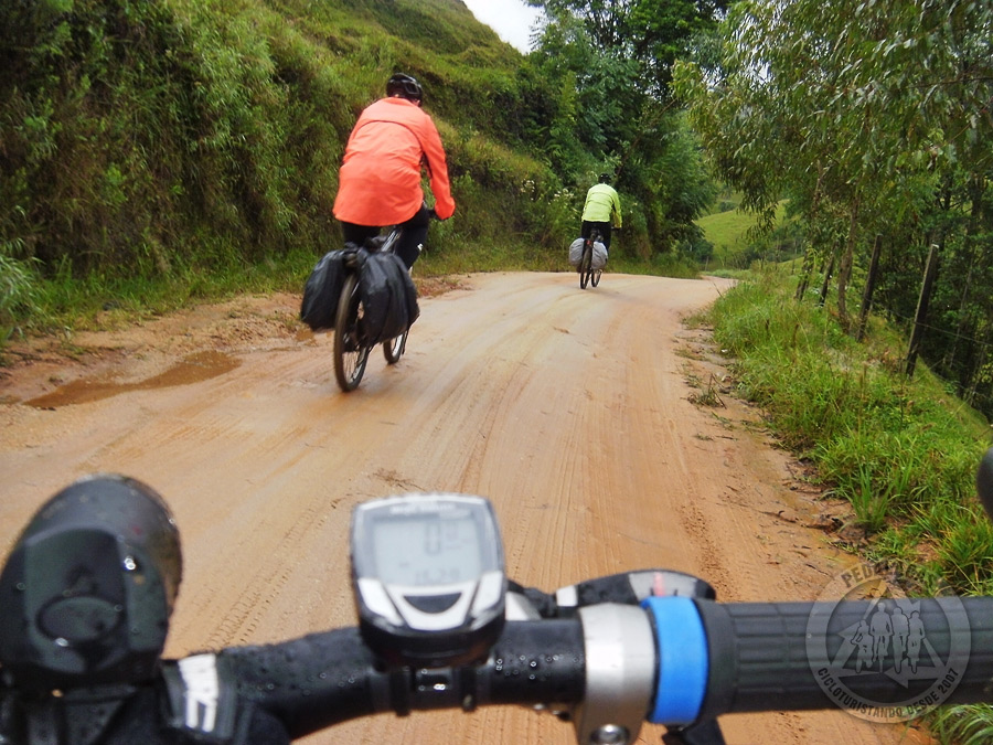 E numa dessas curvas que surgem do nada, Rodrigo passou direto e quase caiu dentro de um rio. Foi por muito pouco mesmo. Chovia demais naquele momento, muita lama e escuridão total. Porém, estávamos nos divertindo um bocado. Nada de frio, fome ou cansaço. Curtimos de verdade o momento.