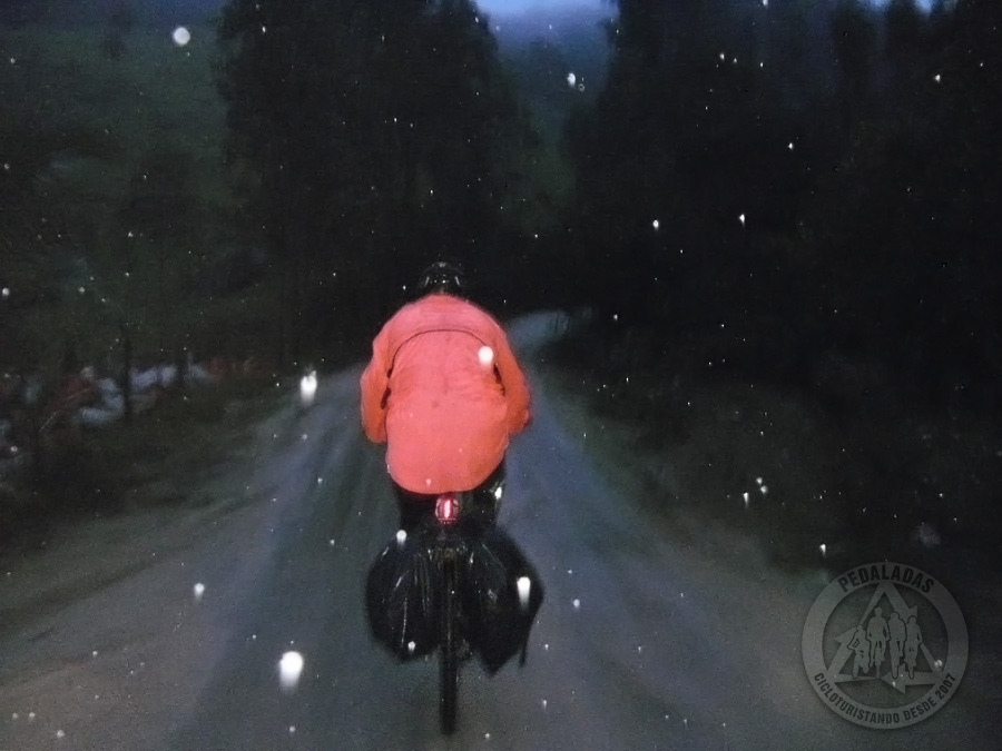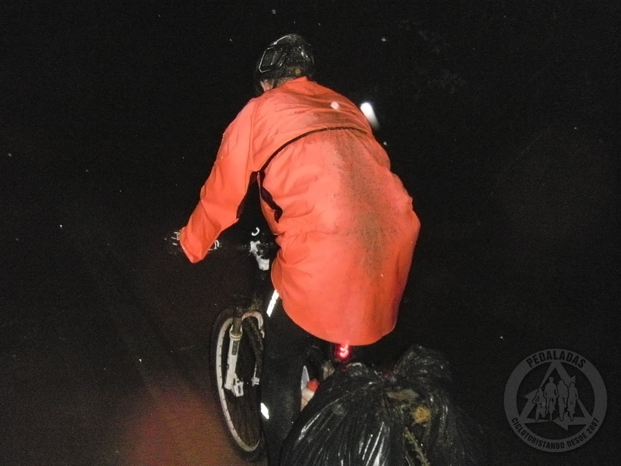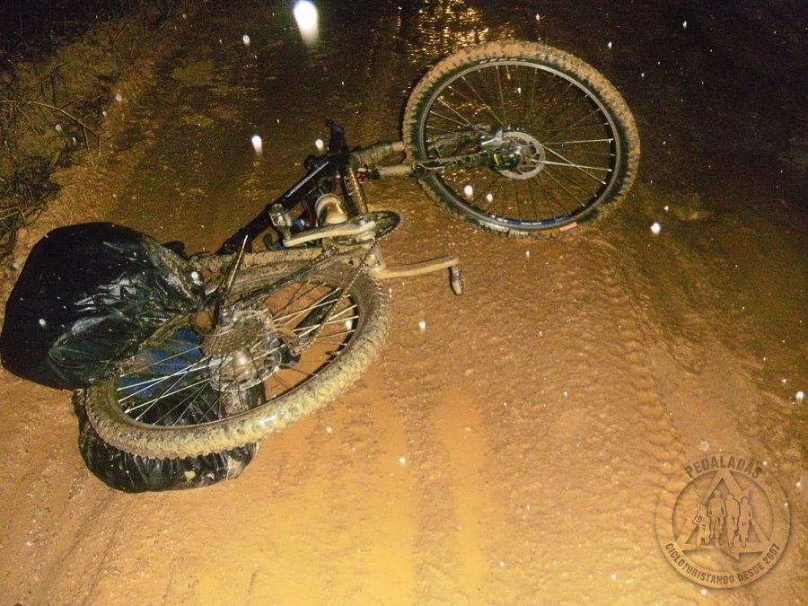 Foi um momento sombrio. Não parávamos de subir e junto com a chuva veio à noite... Pedalamos por horas e horas no meio do nada, num negrume total! O cansaço era demais e concluímos que o Roberto pedalou até onde poderia de fato ter ido. Nos conformamos com isso.