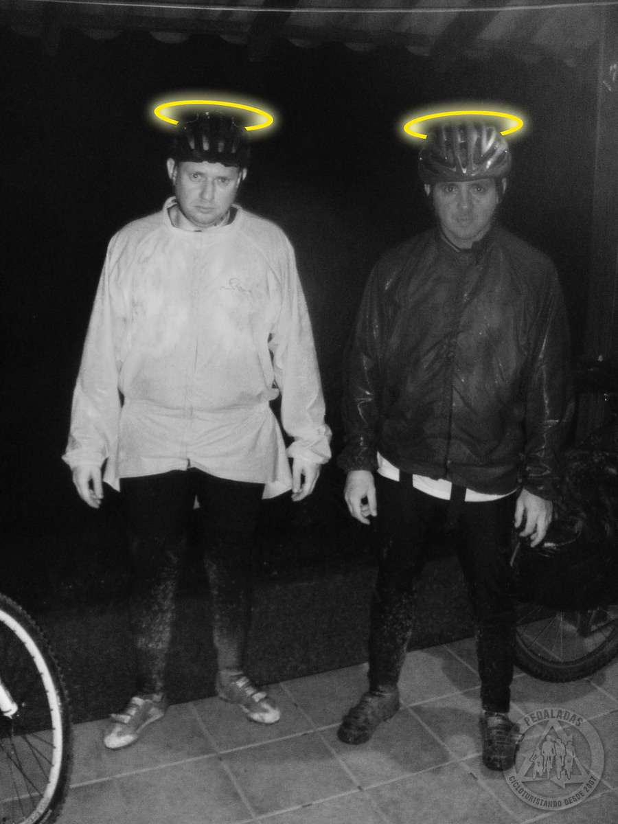 Penúltima etapa cumprida. Emporcalhados, encharcados e acabados. E, ainda por cima... De saco cheio de pedalar!