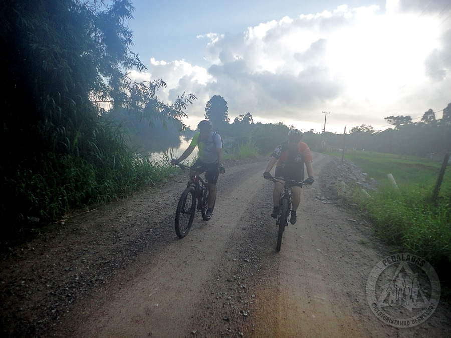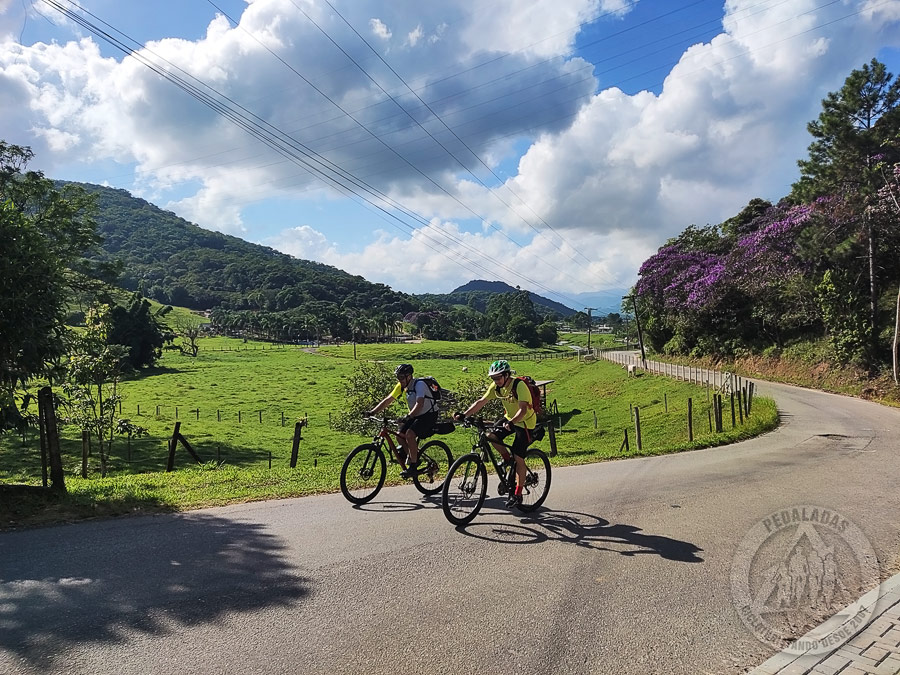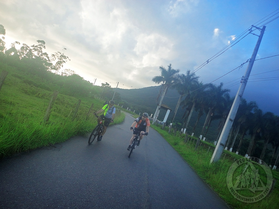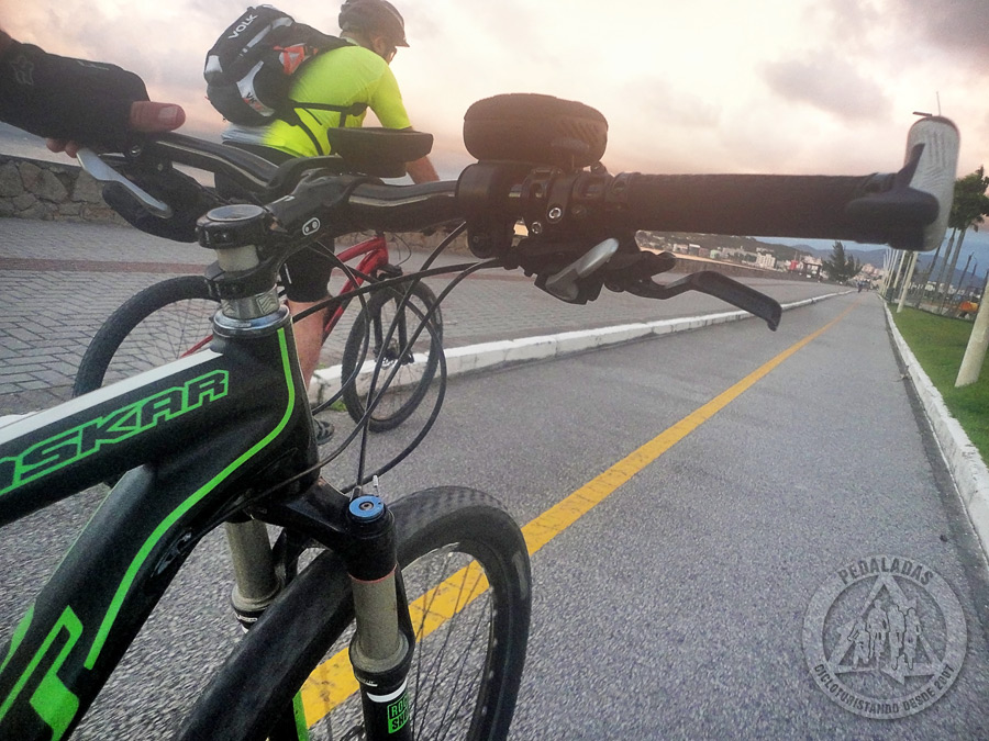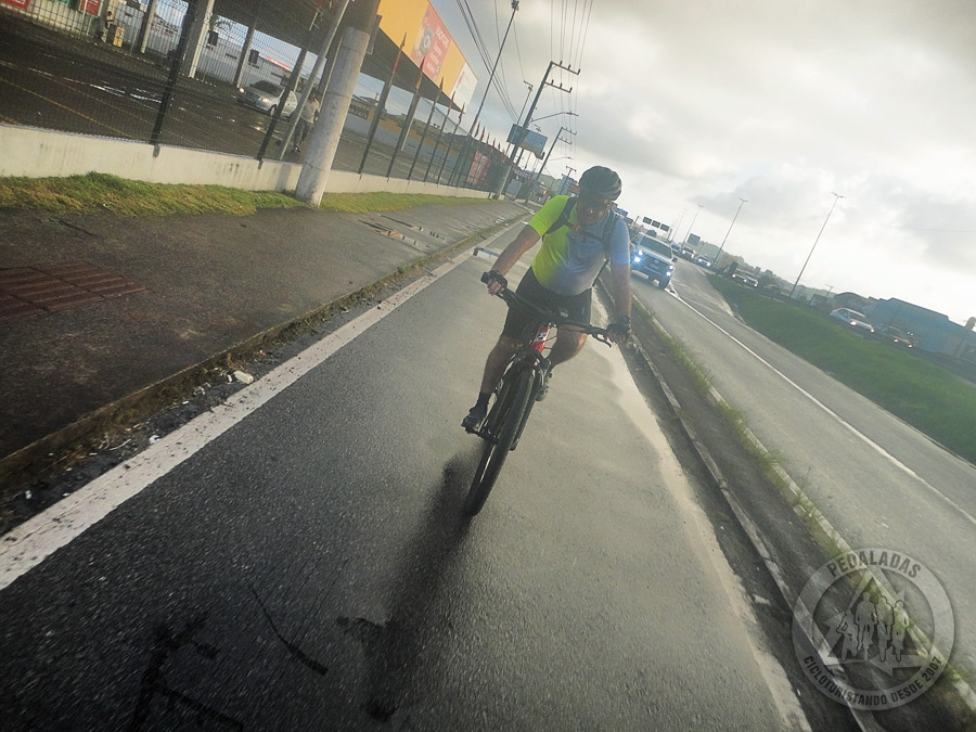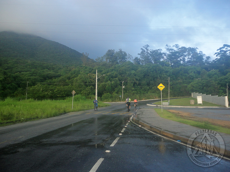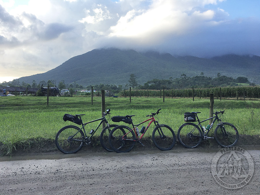 O longo tempo sem pousar na nossa estimada Angelina gerou um clima bastante saudosista na semana que antecedeu tal pedalada, mas que perdeu a sintonia com a alegria assim que tivemos que madrugar após mirradas horas de sono. Farinha Láctea com Nescau até animou o feioso início de dia nublado e embora o trânsito agitado da sempre movimentada BR-101 logo de manhã cedo tenha causado alguma tensão, sequer reclamos de pedalar no intenso acostamento da dita rodovia federal mais perigosa da nossa Pindorama. Na vizinha Palhoça nos encontramos com o também sonolento Fernando e passado a breve chuva, seguimos pedal numa temperatura bastante agradável. Sem a saudosa Ponte do Arame, arrastada nas terríveis enxurradas de 2022, o volteio para cruzarmos o Rio Cubatão foi um tanto maior.