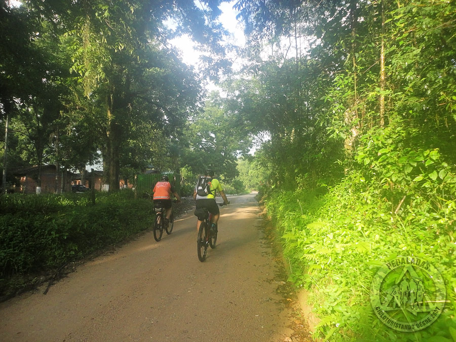 Com predominância por doces, o generoso café da manhã foi agradavelmente bom, pecando apenas pela ingrata ausência de sucos e quem não bebe café se obrigou a passar novamente na padaria antes de seguir viagem de volta. Nove e tanto da manhã já estávamos subindo aquilo que foi uma grande descida na véspera, agora com o impiedoso sol castigando novamente. Vencido o morro inicial, passamos a descer um bocado e paramos apenas na querida tenda mágica para garantir a água e o refrigerante para o restante da divertida cicloviagem.