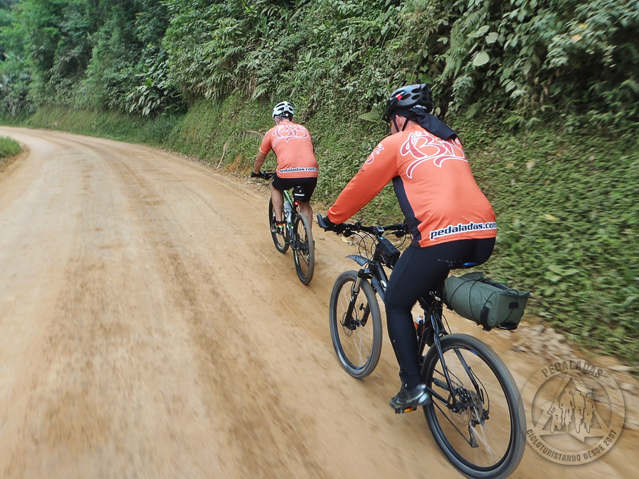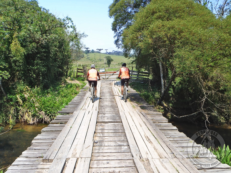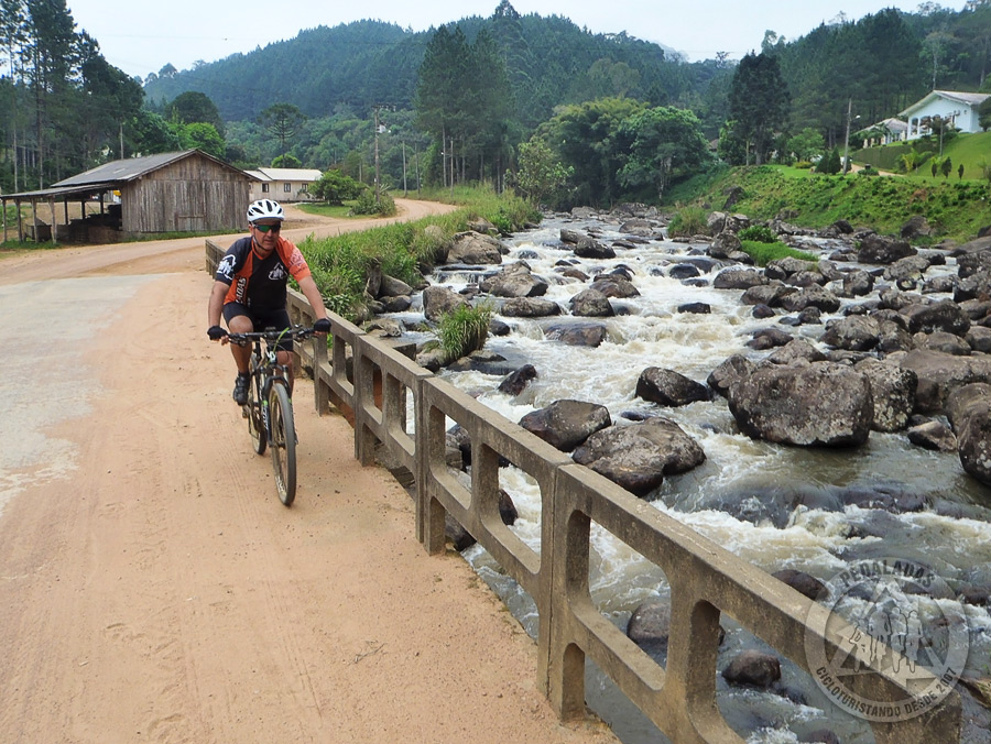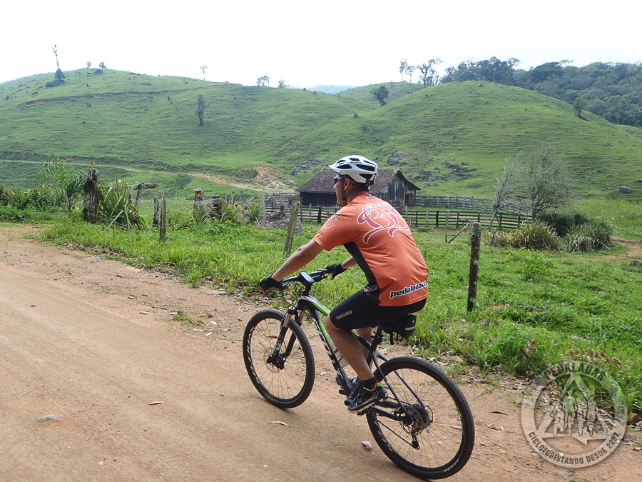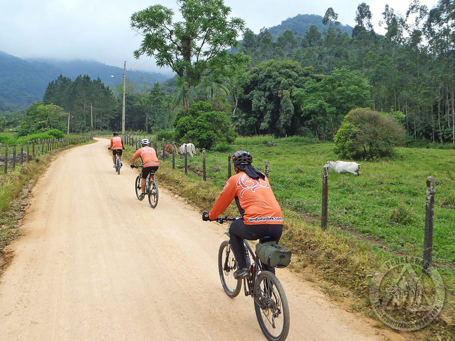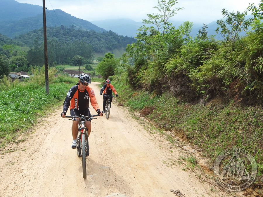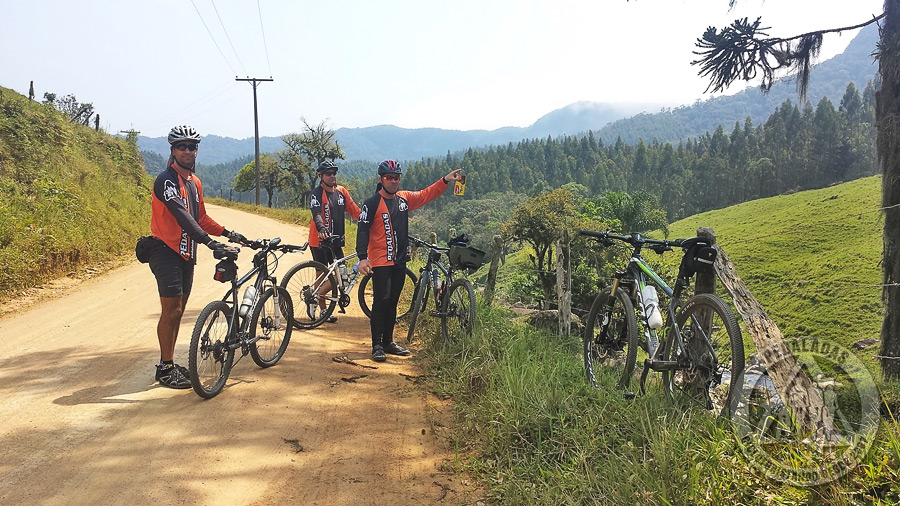 Desfalcados do nosso redator titular/oficial Rodrigo e do mestre dos bits da programação Fernando, mas com a participação dos comparsas convidados Éder e Maurício - o distinto grupelho capitaneado do GPS Man Roberto e por Marcelo (que hoje vos escreve), deu início a uma nova incursão ciclística na área rural da surpreendente Rio dos Cedros. O belo município catarinense é uma ótima opção de turismo rural, principalmente para quem gosta de aproveitar a vida sem pressa. A região dos lagos possui muitas pousadas e possibilidades de esportes náuticos nas grandes lagoas existentes. A brincadeira havia começado na sexta-feira com a chatérrima tarefa de amarração das bicicletas na casa do Roberto em Balneário Camboriú. Três bicicletas foram amarradas e deixadas prontas para zarpar no sábado, precisamente às 05h20. Roberto combinou com o Maurício para chegar 05h10 e colocar a bicicleta dele no suporte com as outras. Mas aconteceu algo estranho com o Maurício que é estritamente cuidadoso com horário, já que é profissional da odontologia e zela muito pela boa hora marcada. Roberto ligou 05h30 e o celular tocou até cair na caixa postal. Roberto deu mais dez minutos e resolveu seguir o bonde, porém, eis que o Maurício liga e então rumamos a casa dele. Enquanto amarrávamos a bicicleta, ele foi correndo de um lado ao outro pegando as tralhas ciclísticas e também um panetone surrupiado da dispensa doméstica que serviria como estimulador de apetite do café da manhã de alguns. Nesse meio tempo, provavelmente o Éder estava se contorcendo de tanto esperar porque chegou ao ponto marcado às 05h20 e quando passamos por ele já passava das 05h55.
